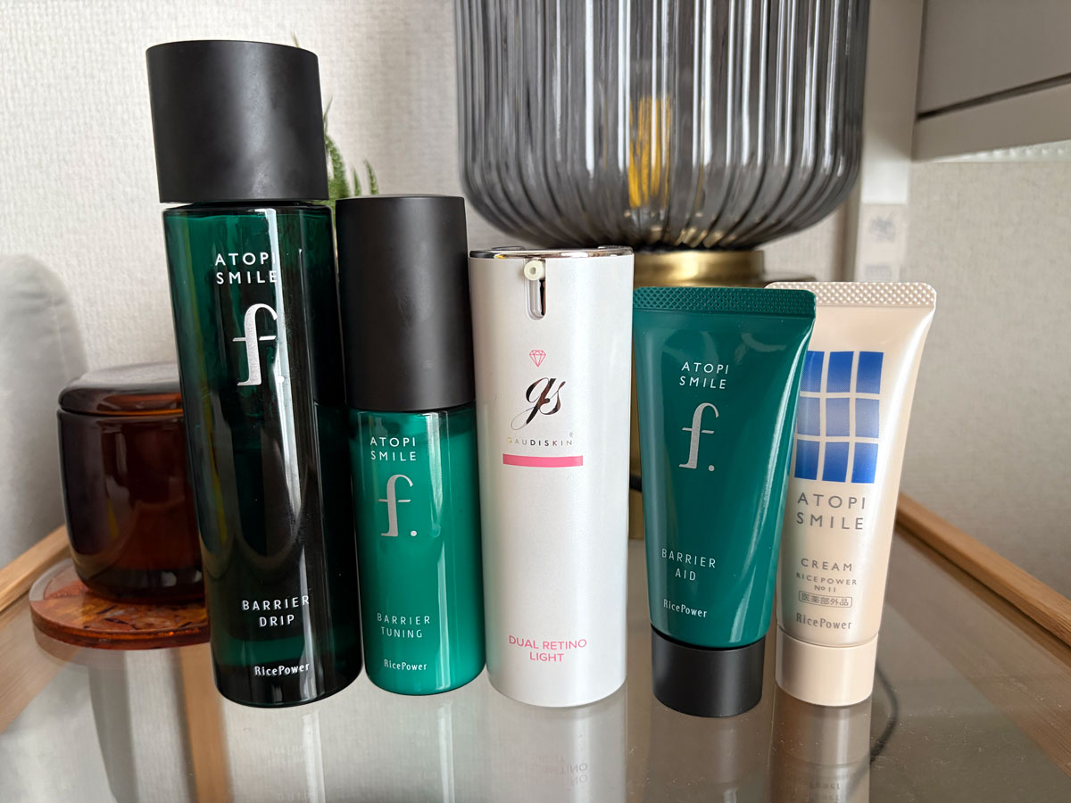 私は、自分の肌の様子を見ながら、以下のような製品を「マイルドな順」にステップアップさせて肌を育てていきました。